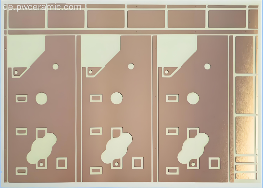 Die Kombination aus Keramik mit hoher Wärmeleitfähigkeit und präziser Kupfermetallisierung sorgt für eine effiziente Wärmeverteilung, die für Dünnschichtschaltungen von entscheidender Bedeutung ist, bei denen örtliche Erwärmung die Leistung und Zuverlässigkeit beeinträchtigen kann.